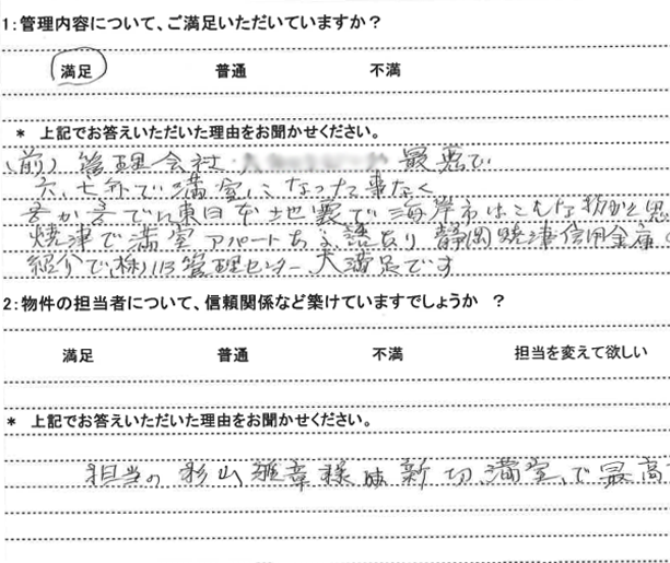 以前の管理会社様にご不満があり当社に来店されました。大手管理会社にお任せされておりましたが空室率が高いことから管理内容を見直したところ、満室までたどりつくことができました。